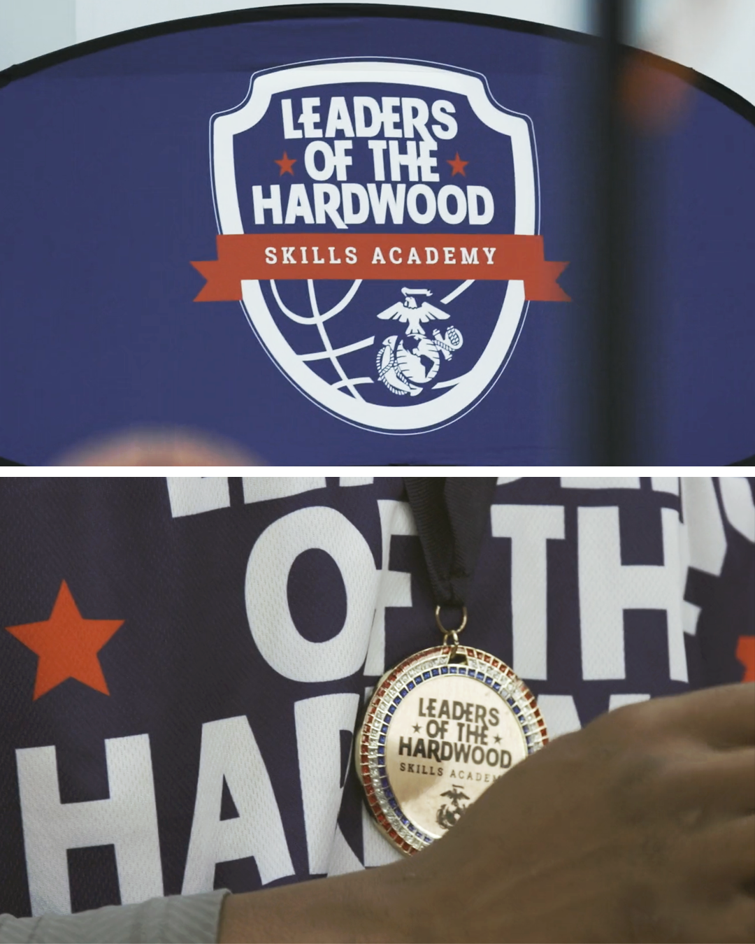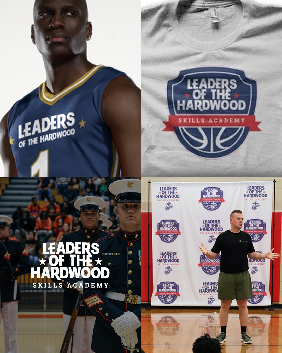 Logo for the Marine Corps “Hardwood Basketball Clinic”