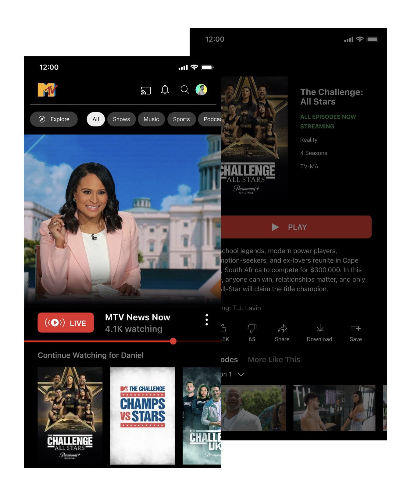 How can we meet our users where they are = YouTube and MTV original content, including a revamped MTV News platform. MTV no longer has a standalone app, as its content has been integrated into the Paramount+ platform. The decision to consolidate streaming services under Paramount+ means all MTV shows and programming are now accessible through this single app. While this consolidation simplifies access to various content, it also complicates finding MTV-specific programming. The MTV app's original design was aimed at providing a distinct, user-friendly experience for fans, and any new design must retain this sense of familiarity, ensuring that MTV's unique branding and user feedback are reflected while differentiating it from the broader Paramount+ app.