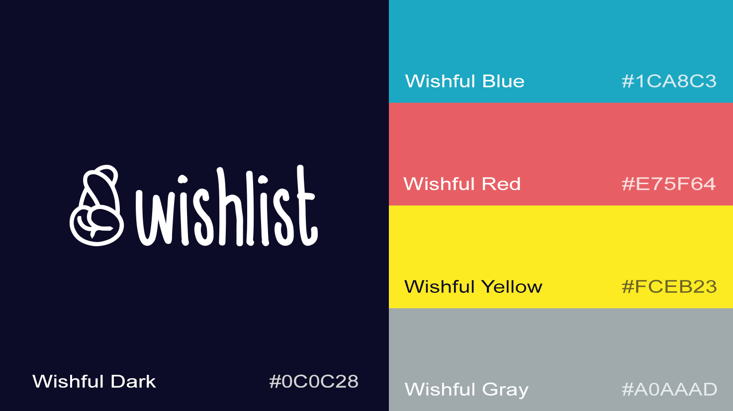 I designed the Wishlist logo to convey trust, pairing a muted dark palette with contrasting accent colors that signaled energy and excitement.